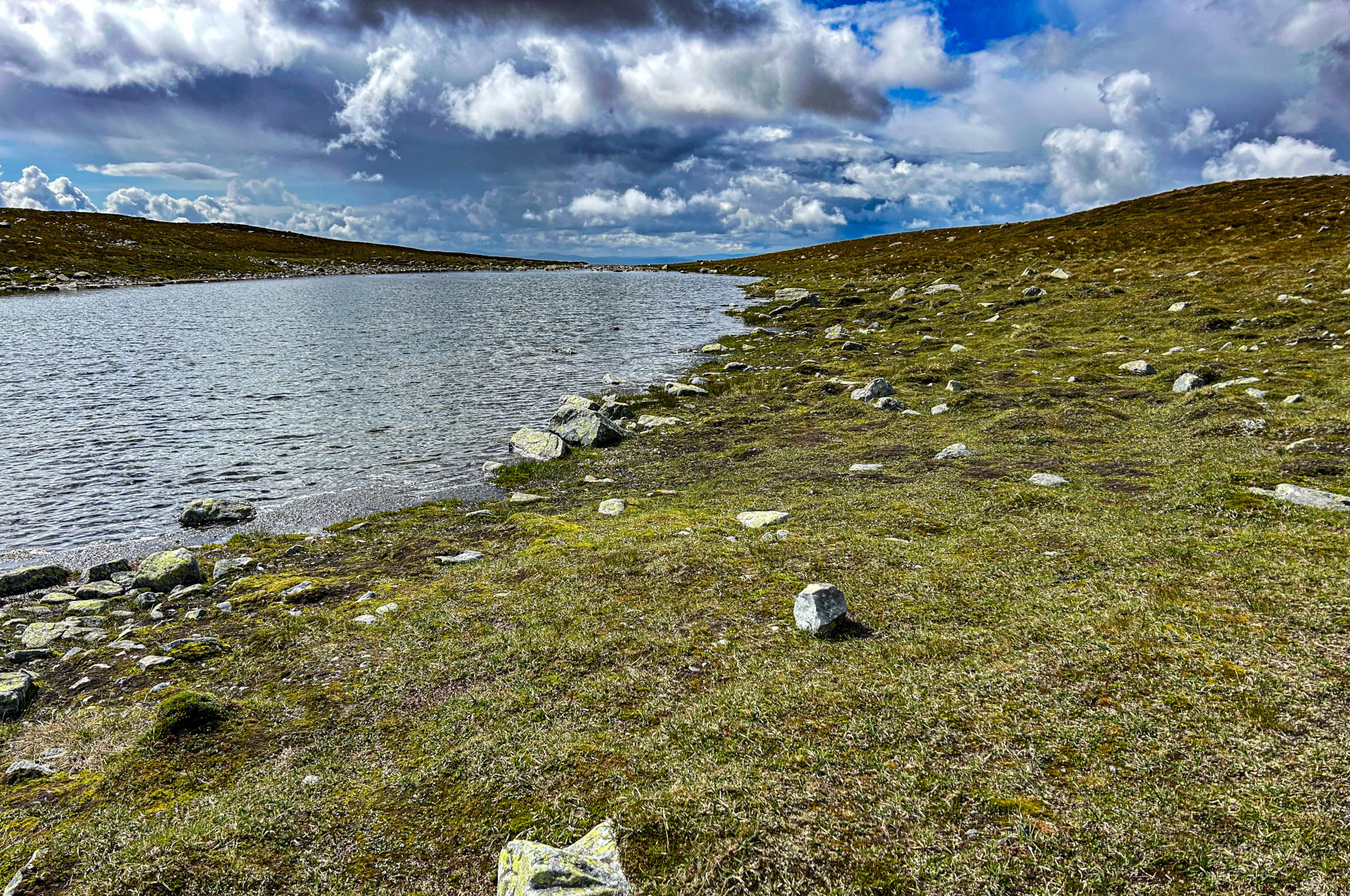 Kleiner Bergsee, der eingebettet zwischen den Gipfeln des Hundshögen und des Hästryggen liegt