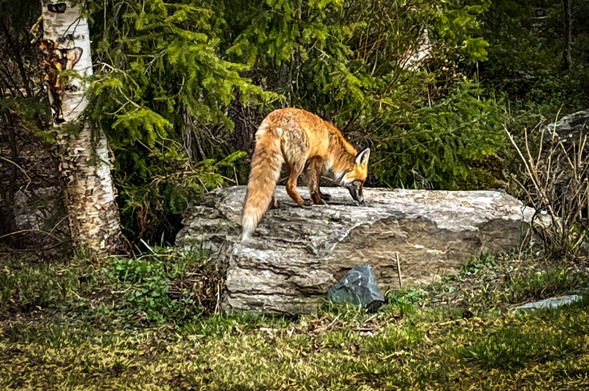 Ein Fuchs kommt neugierig zu den Häusern