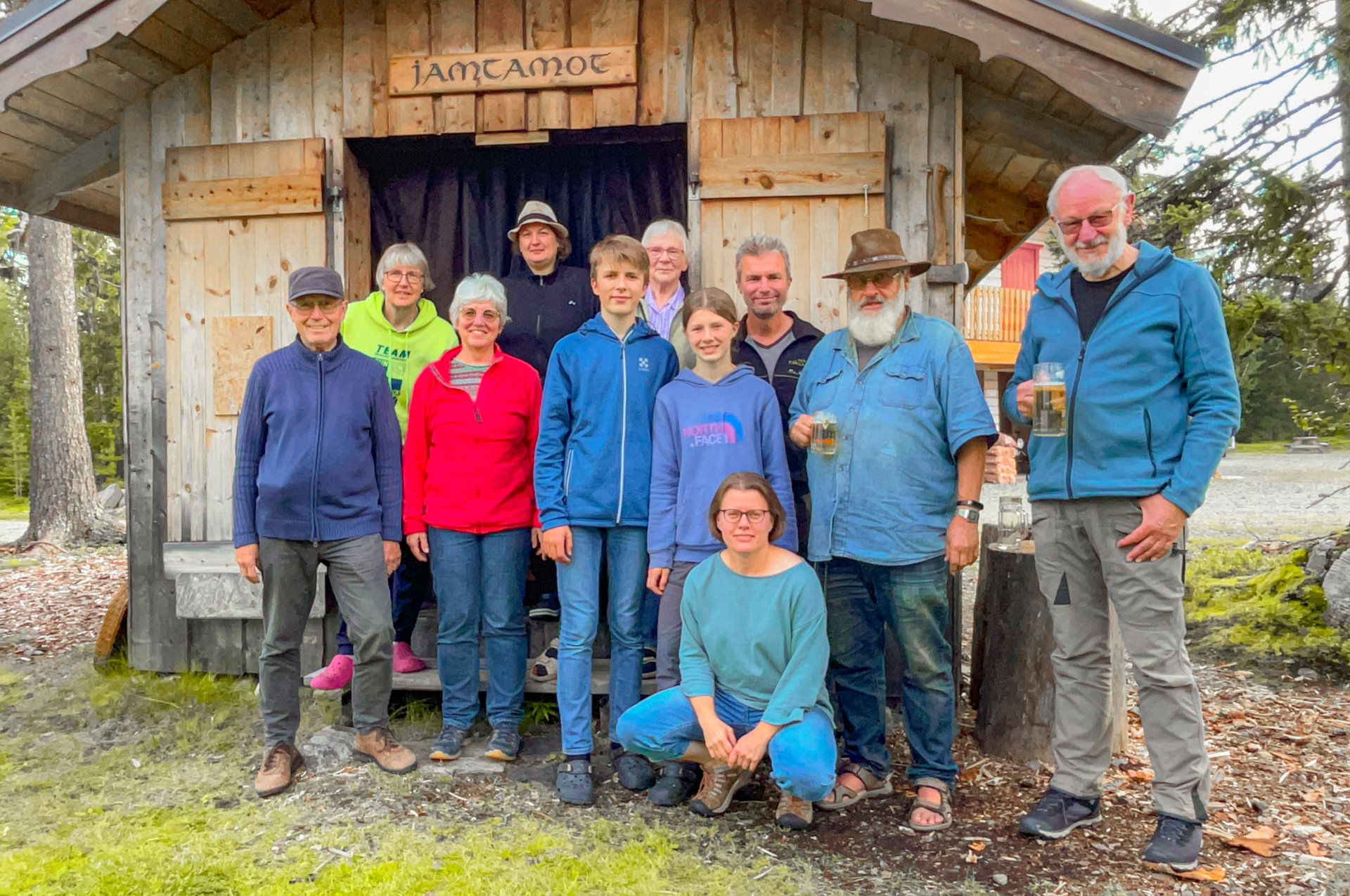 Gruppenfoto mit einigen unserer langjährigen und treuen Gästen vor der Grillhütte
